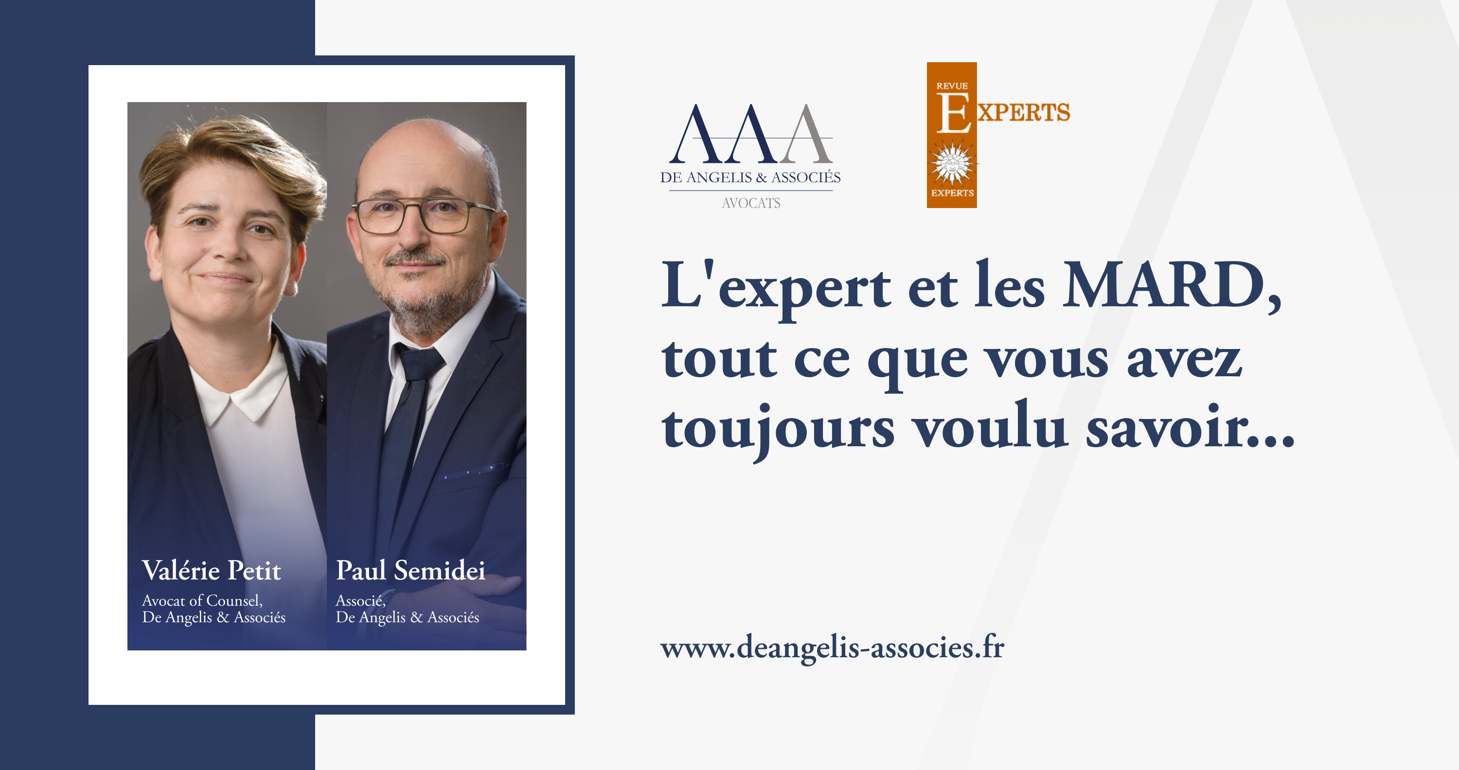 Notre associé Paul Semidei et notre Of Counsel Valérie Petit signent un article dans le dernier numéro de la Revue Experts (n°178 – mars 2025), consacré aux interactions entre expertise judiciaire et modes amiables de règlement des différends (MARD).