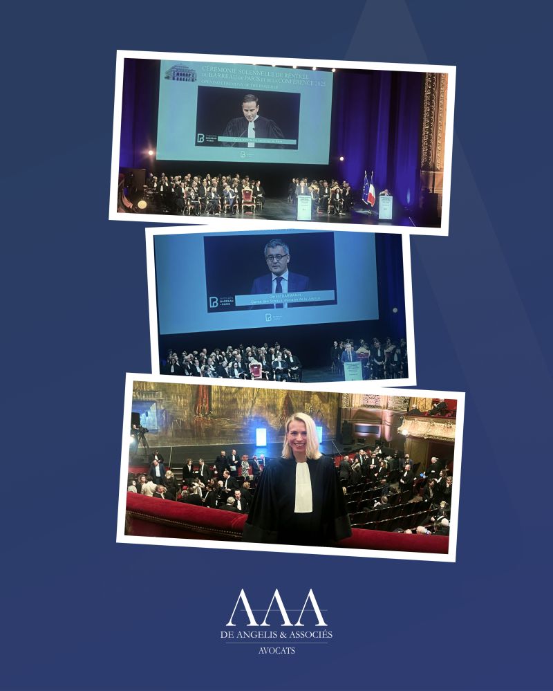 Notre associée Domitille Pozzana a assisté à la Rentrée solennelle du Barreau de Paris (Ordre des avocats de Paris), en présence notamment de Pierre HOFFMAN (Bâtonnier), Vanessa Bousardo (Vice-Bâtonnière), Anne Hidalgo (Maire de Paris), Gerald Darmanin (Garde des Sceaux) et du Bâtonnier élu Louis Degos.